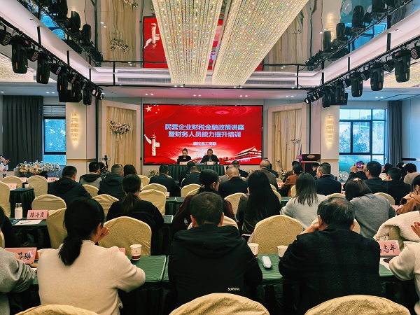 为深入学习贯彻党的二十届四中全会精神,切实提升县域民营企业负责人及财务人员的财税管理能力,筑牢企业合规经营根基,11月14日,宿松县工商联(总商会)举办民营企业财税金融政策讲座暨财务人员能力提升培训,县政协副主席、县工商联主席吴昊,县委统战部副部长、县工商联党组书记周发勤出席,全县各行业120名企业负责人、财务骨干参加培训。